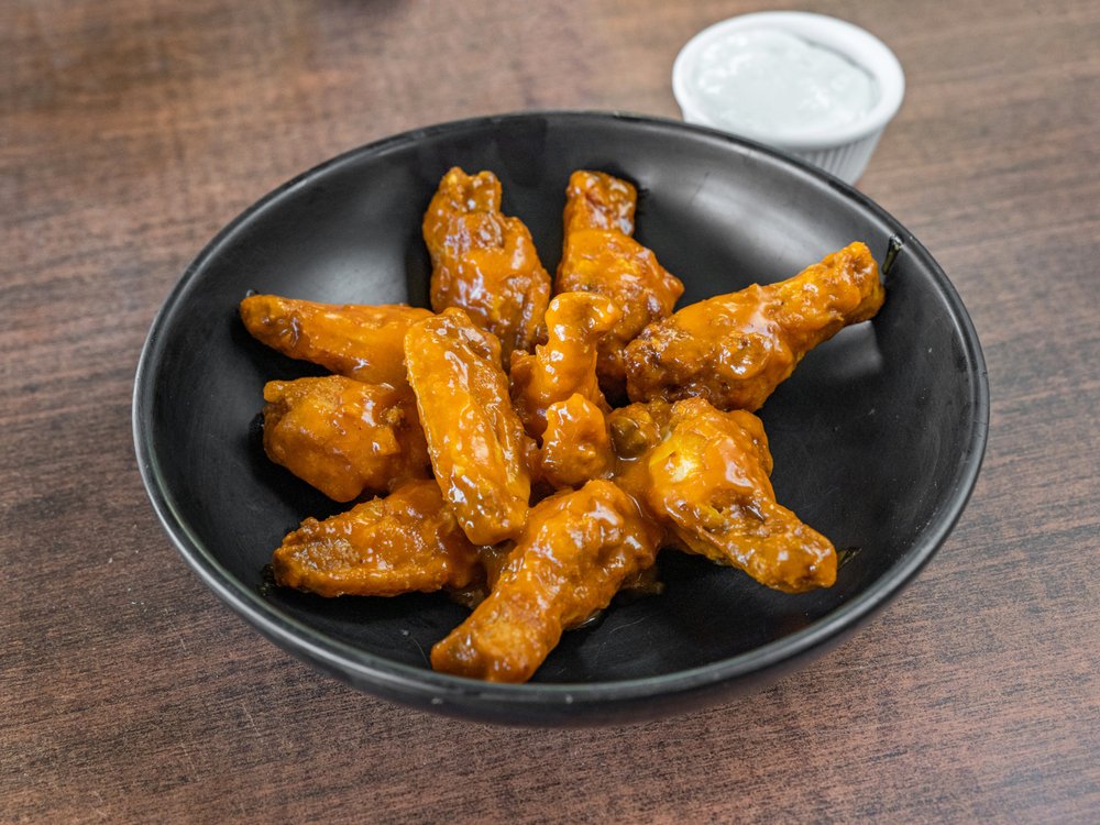 Tossed in your choice of sauce served with blue cheese or ranch dressing.