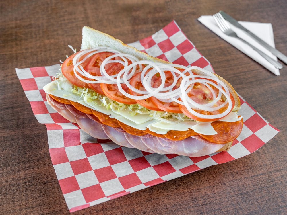 16in steak, lettuce, tomato, onions topped with American cheese and Mozzarella cheese